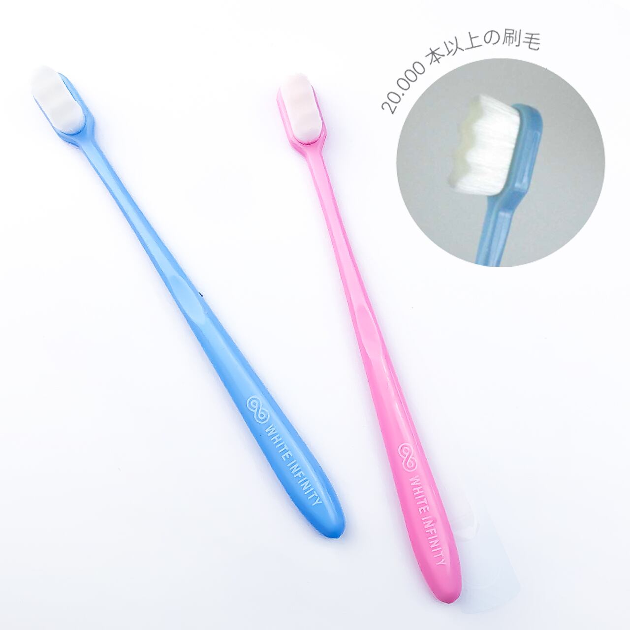 汚れ落としに最適な極細ヘッド歯ブラシ。ブラシヘッドには約 20,000 本のやわらかい毛を使用しエナメル質を傷つけずにやさしく表面の汚れを落とすことができます。